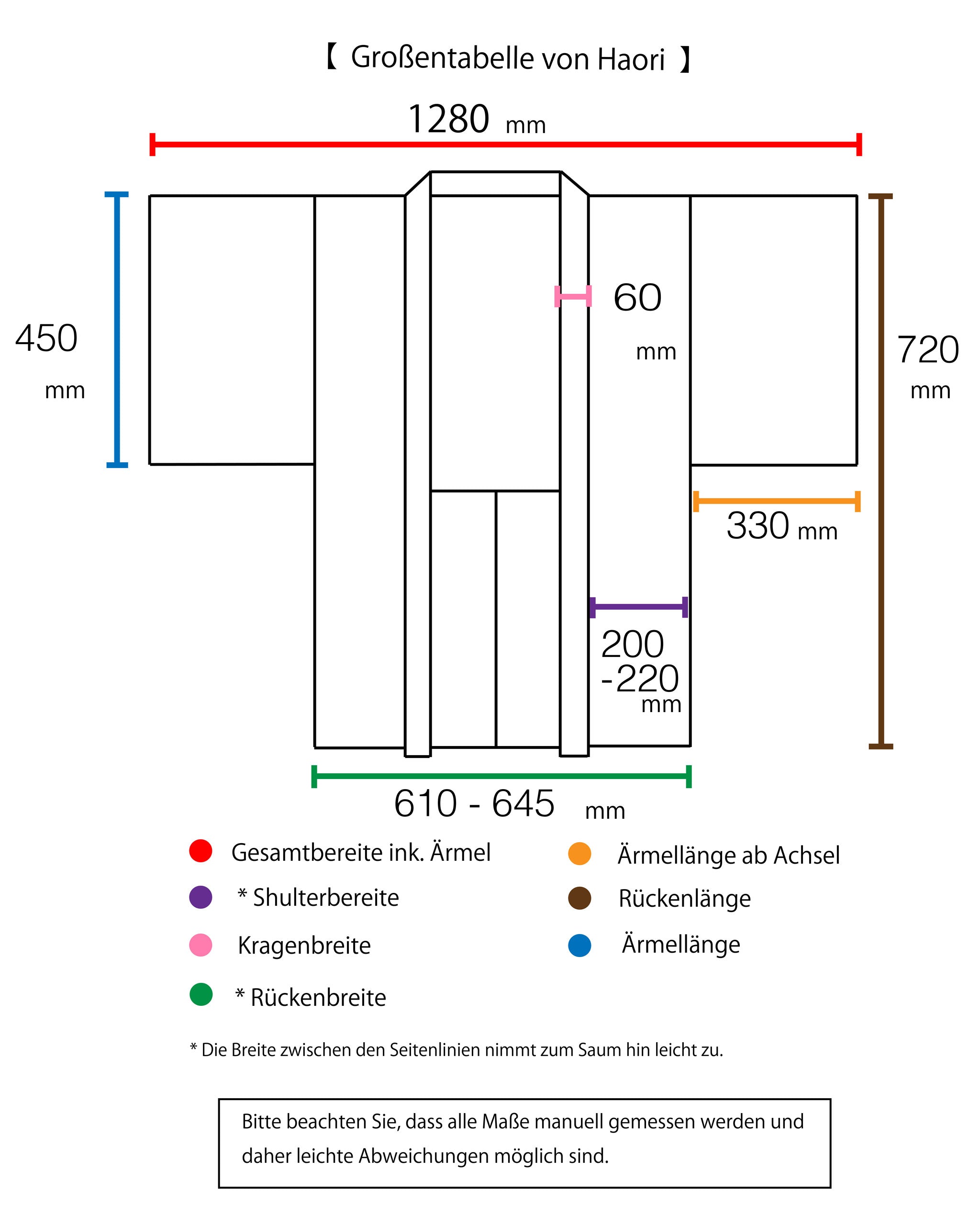 Da die Maße einzelner Haori leicht variieren können, dient die EU-Größe nur als grober Richtwert.