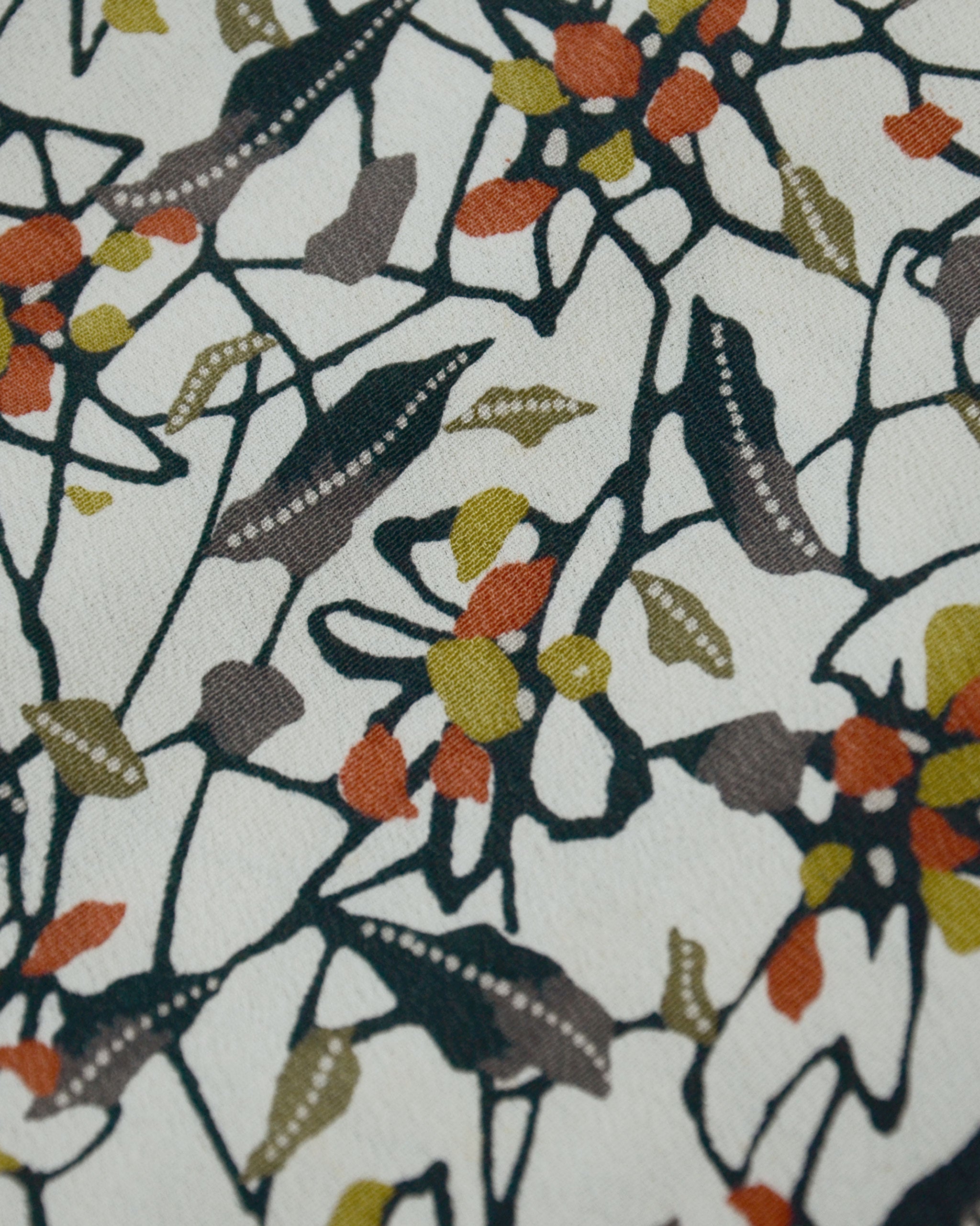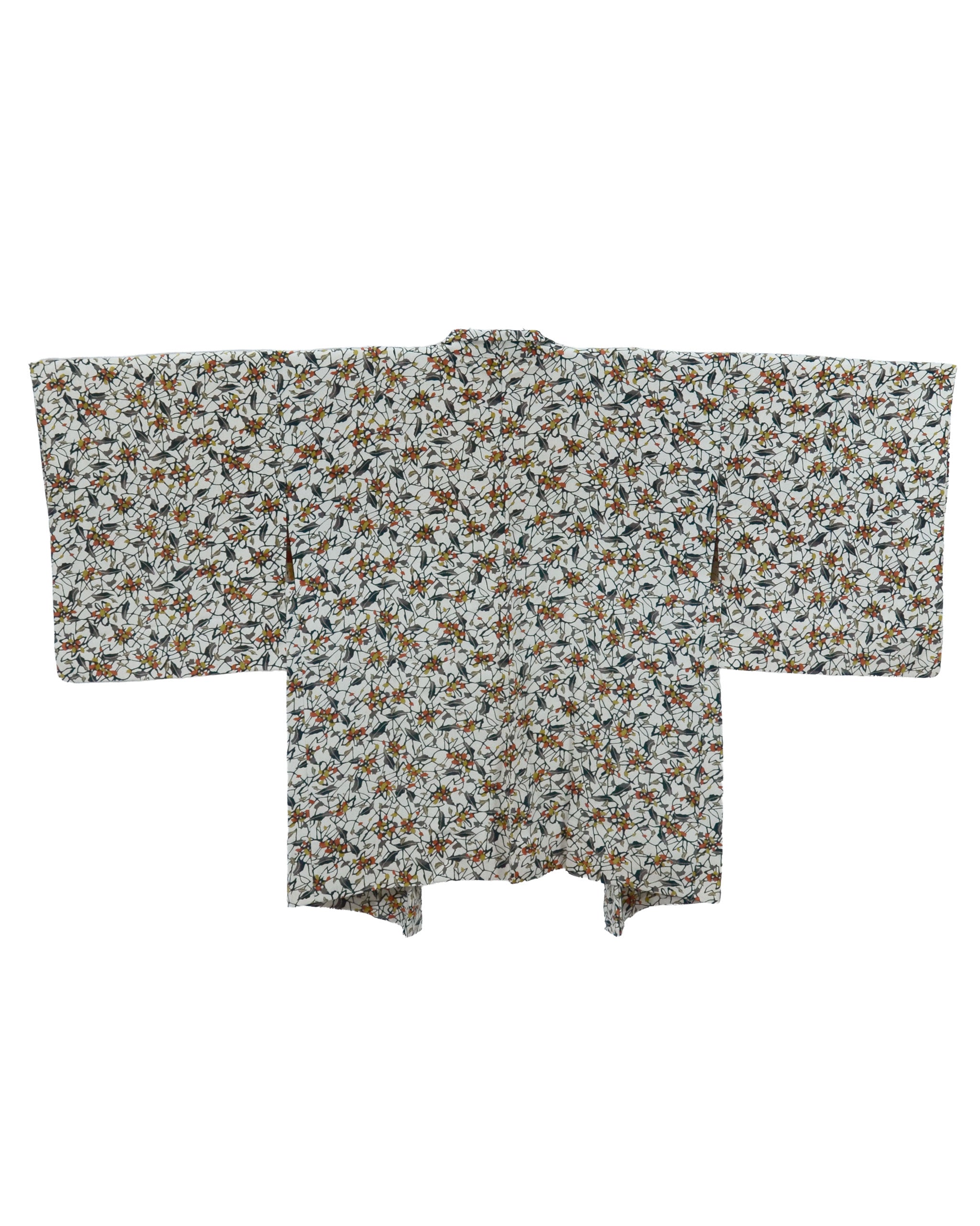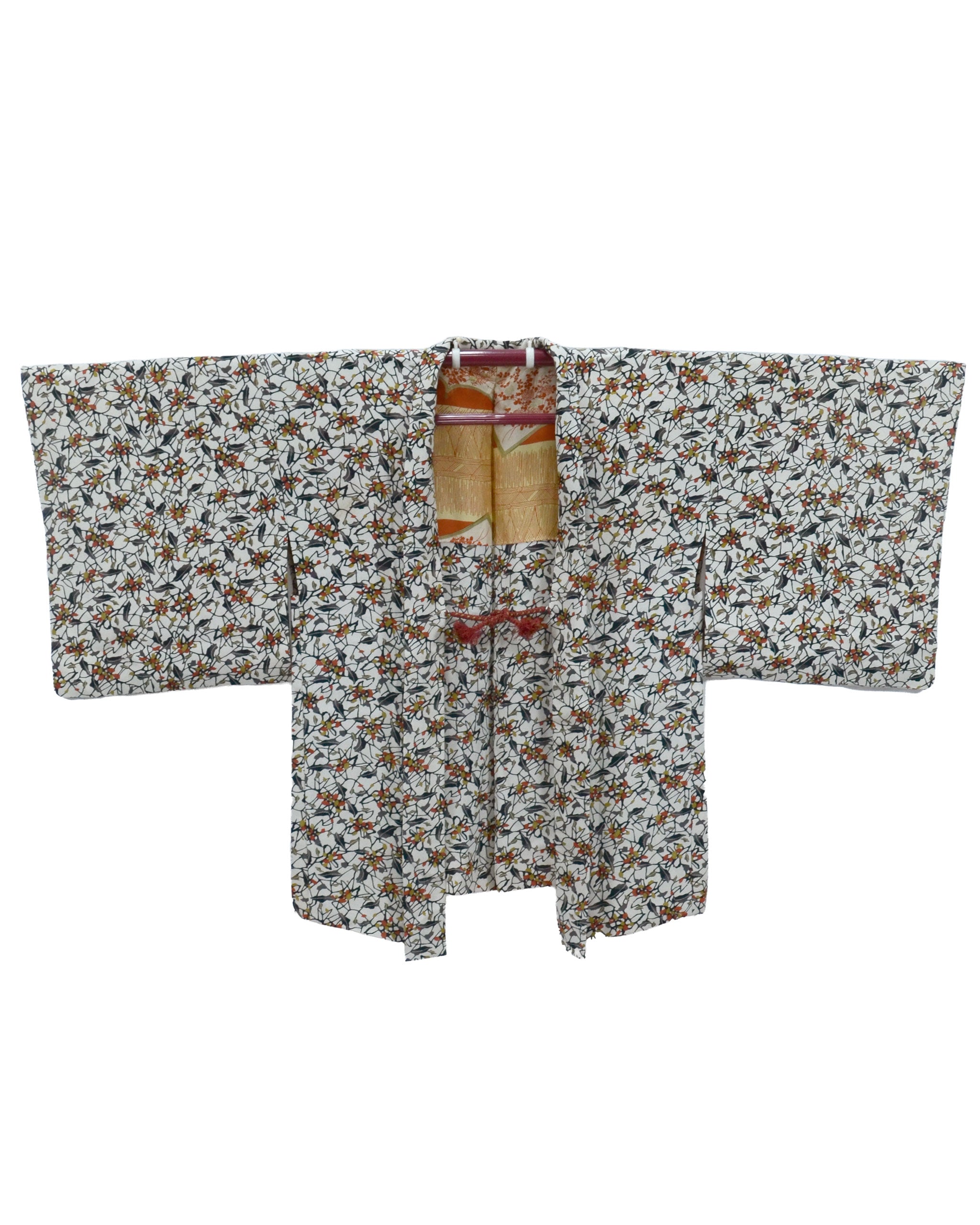 Dieser Haori besticht durch ein weißes Grundgewebe, auf dem kleine Früchte in einem lockeren Komon-Muster verteilt sind – ein lässiger,...